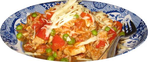 Place Oil in large pot, add garlic, onion and capsicum. Cook a couple of minutes before adding chicken. When chicken has browned add pepper, basil and salt and then add the can of tomatoes. Cook for 10 minutes and then add the cooked rice. Simmer for 5-10 minutes to allow the flavours to meld.