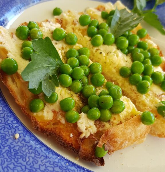 Toasted Turkish topped with Ricotta and Garden Peas dressed with Extra Virgin Olive Oil , Wild Pepper, White Kunzea and Sea salt. Garnished with fresh Sea Parsley.