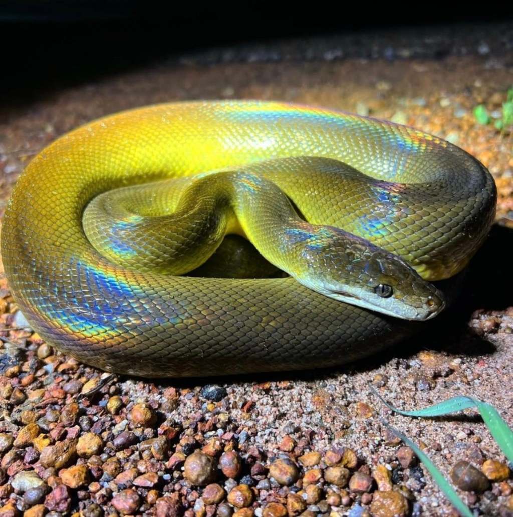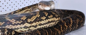 The amethystine or scrub python is Australia’s largest snake, growing to lengths of 8.5 metres, but more commonly 3.5-7.5 metres. This one is a resident of the Australian Reptile Park on NSW’s Central Coast just north of Sydney.